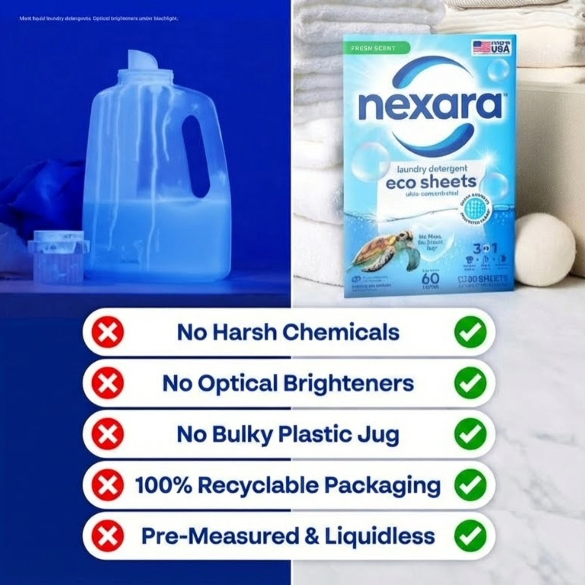 Heavy plastic bottles, messy spills, and wasted detergent don’t belong in modern homes. Nexara™ sheets simplify your routine with powerful cleaning in a lightweight, eco-friendly form.
